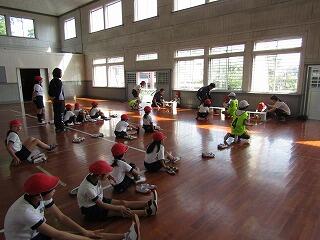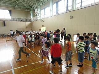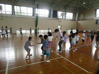 朝の時間に全校のみんなで体育館に集まり、「じゃんけんゲーム」をしました。