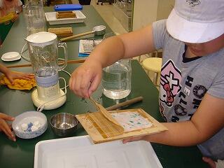 牛乳パックのリサイクルで紙すきをしました。初めての体験で、みんな、「え~っ、はがきができてる!」と大喜びでした。またゴミピットの中の大きなクレーンがゴミをつかむのを見て、「UFOキャッチャーみたい!」とびっくりしていました。