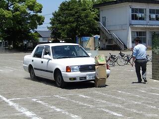 また、走行中の車にぶつかったらどうなってしまうのかを段ボールを使った実験で見せていただきました。想像以上の衝撃に子どもたちも驚いた様子でした。