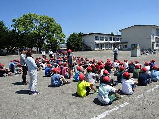 実際に高原の消防署員の方に来ていただき、避難訓練の様子を見ていただきました。子どもたちも放送をしっかりと聞いて、避難することができました。