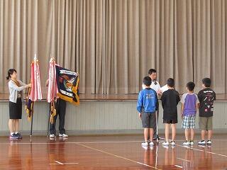 高原小学校バレー少年団の表彰も行われました。4月から数々の大会に出場し、3本もの優勝旗を持ち帰ってくれました。これからのますますの活躍を期待しています。頑張ってください!!