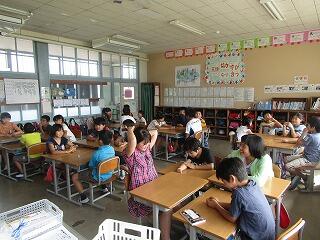 その後は狭野小で見学のまとめを行い、みんなで楽しくお弁当を食べました。みんなで楽しく交流を深めることができたと思います。