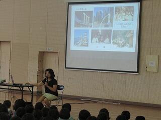 たくさんの海外の国を旅されているジェフ先生に外国の生活のことをお話いただき、子どもたちも興味津々の様子で聴いていました。