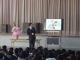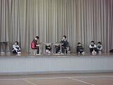 保健体育委員会は手洗いやうがいの大切さ、給食委員会は給食時間の過ごし方について寸劇を交えて、全校児童に気を付けてほしいことを発表しました。