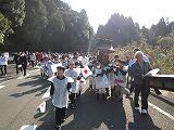 本校の4年生が、2月11日にあった御神幸行列に参加しました。狭野神社から皇子原公園まで、事前に作成した昔の人々の衣装を着て、小さな神輿を担いで歩きました。