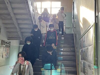 火災を想定した避難訓練をしました。「お・は・し・も」を守って、放送を静かに聞いて避難することができました。また、全員が運動場に避難した後も、静かに待つことができました。