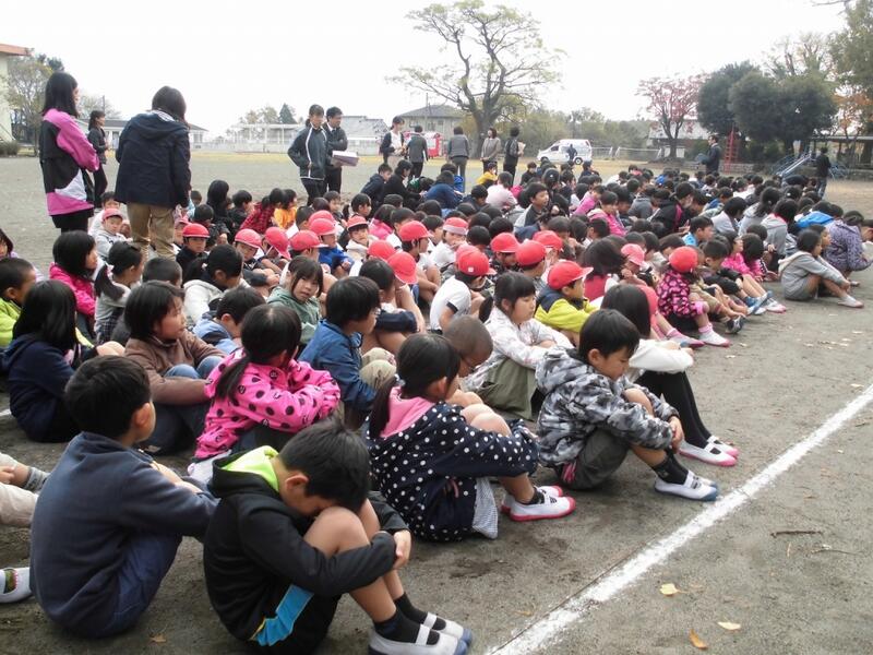 1校時の休み時間、非常ベルの後に教頭先生による放送がありました。子どもたちは落ち着いて聞き、マスクで口を押さえながら静かに運動場へ避難することができていました。
