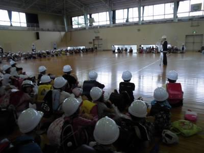 体育館では登校班長を中心に地区ごとにしっかり並んで待つことができました。