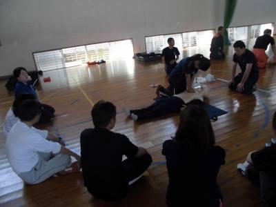 意識の確認の仕方、心臓マッサージや人工呼吸の仕方を人形を使った研修を通して、学ぶことができました。