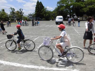 1.2年生は歩行での横断歩道の渡り方、3~6年生は自転車での横断歩道の渡り方を学習しました。緊張感をもって、参加している子どもたち、暑い中よく頑張りました。