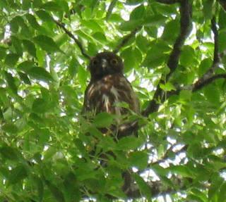 体育館前のセンダンの木に、今年もアオバズク(ふくろう科の鳥)がやってきました。