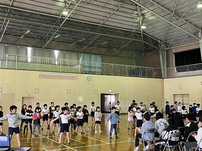 運動会に向けて全体練習が始まりました。1回目にもかかわらず、全体的に落ち着いて話を聞くことができていました。また、準備運動も役員児童をお手本にしてすることができました。練習を重ねて、優勝をめざして団員のつながりができていくと思います。