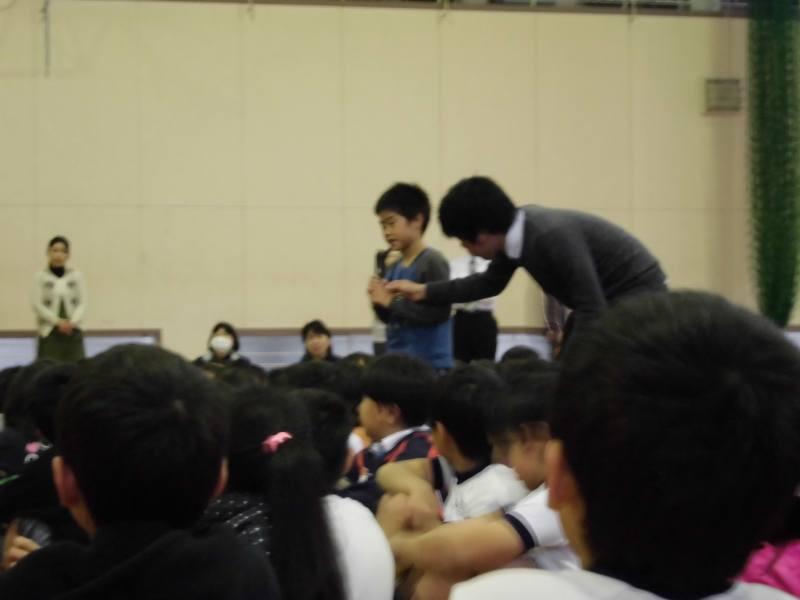 3月5日は読み聞かせ感謝集会が行われました。1年間子どもたちに読み聞かせをしていただいたボランティアグループ「あしあと」の皆さまに子ども達が感動のメッセージを伝え、ささやかなプレゼントをしました。