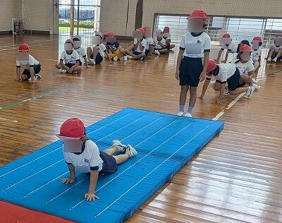これから、数回、体育ではこんなマット遊びを1年生はしてまいります。