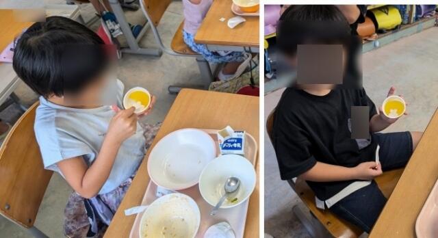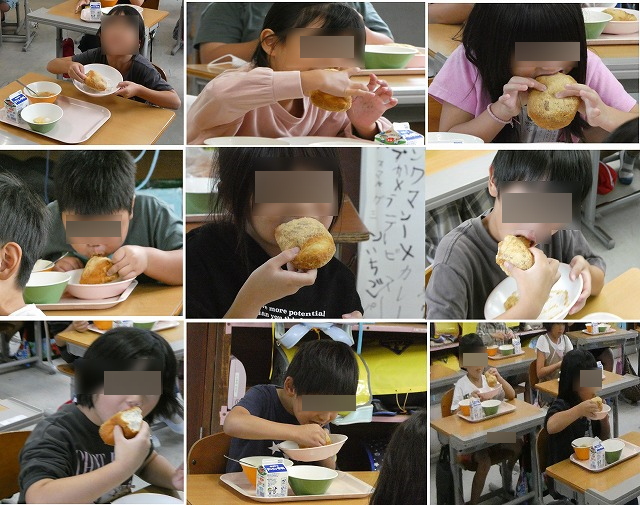 今日の給食は、初登場の揚げパンを味わった子どもたちでした。