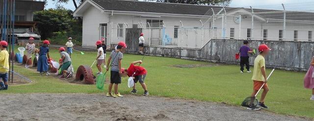 走る、走る、子ども達!網をふって、ふって、ふりまわして・・・。