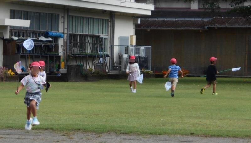 そして、いよいよもってきた虫取り網を手に、校庭にGO!