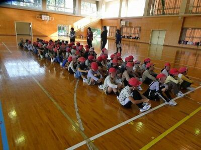 まず、体育館で「出会いの集い」として、簡単に交流の流れについて