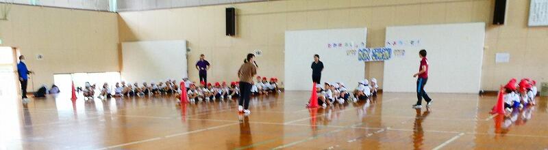 交流学習、後半の1時間は、みんなで体育の学習をしました。