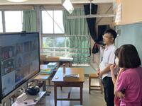 7月31日(水)朝の8時30分から、タブレットを使ったオンライン朝の会を学級ごとに行いました。担任の先生と子どもたちがオンラインでつながり、健康観察を行い、登校日の確認などを行いました。