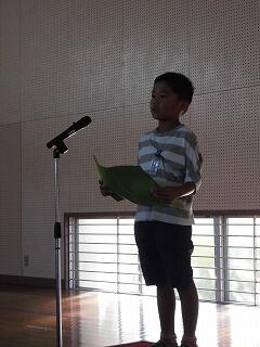 児童を代表して2年生の児童が、1学期を振り返った作文を堂々と発表しました。