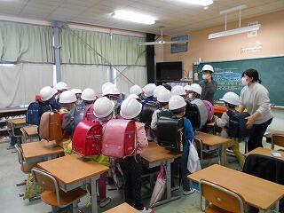 子どもたちは、お(押さない)、か(かけない)、し(しゃべらない)、も(戻らない)の4つの避難の約束を守って、避難をすることができていました。