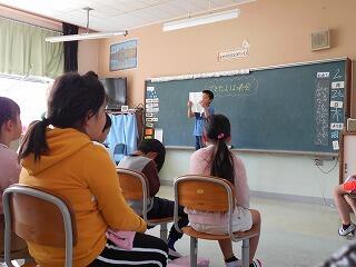 子どもたちは、身を乗り出して聞いたり、笑顔で楽しそうに聞いたりしていました。