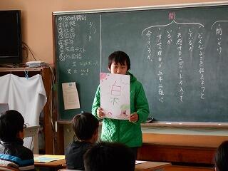 国語と体育を他校の児童と合同で行った後、メインイベントのカルタ大会でした。