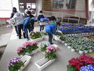 泥だらけになりながら、子どもたちは上手に植えていました。