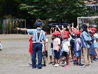 来校していただいた警察官の方から、学校にいるときだけでなく、”登下校時など” に不審者に遭遇したときの対応についてもお話いただきました。子どもたちは、「いかのおすし」の約束を振り返りながらお話を聞いていました。