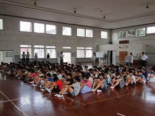 最後に、池袋先生から、「火」、「水」、「車」、「人」に気を付けること、登校班での登校の仕方、あいさつの仕方についてのお話がありました。台風25号が迫っていることもあり、子どもたちには、安全に秋休みを過ごしてもらいたいと願っています。
