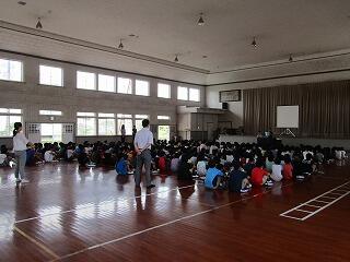 全校集会では、校長先生から「平和」についてのお話がありました。子どもたちにも夏休み期間中に「平和」ということについて、考えてほしいと思います。
