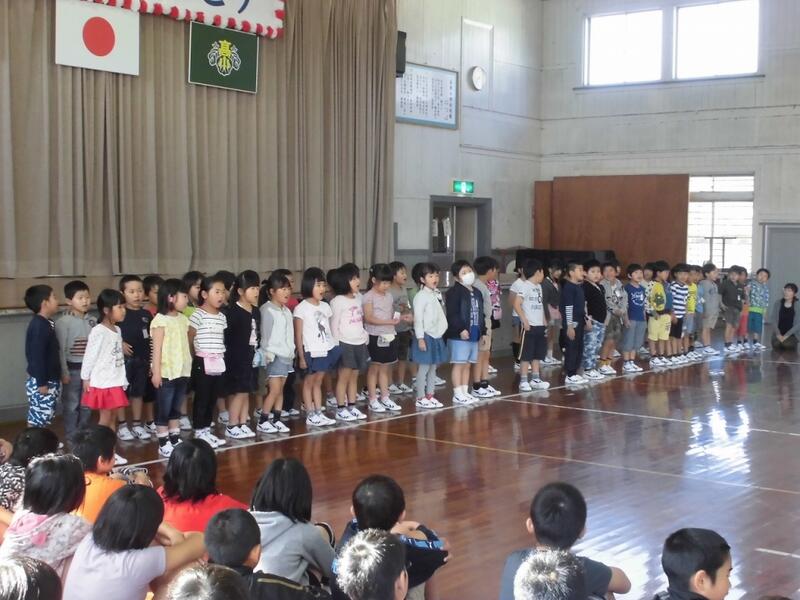 4年生の児童が、2学期の目標をみんなの前で宣言し、他の子どもたちもまた新たな目標をもっているようでした。