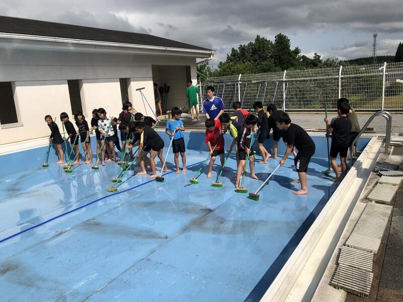 プールの側溝、子どもたちが使う更衣室やトイレの清掃をしました。
