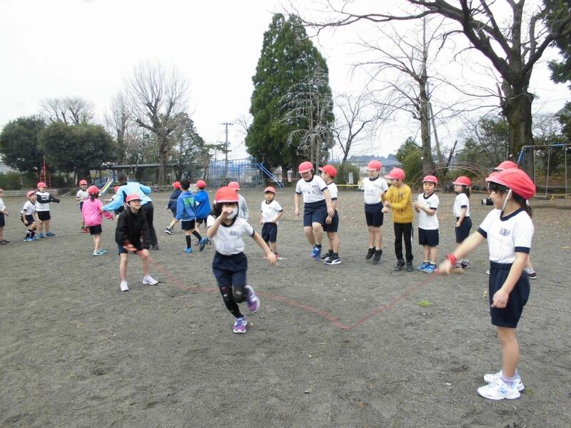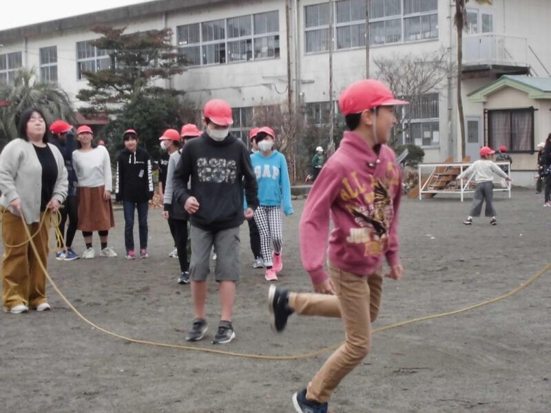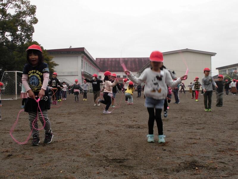 短縄や大縄を笑顔で跳ぶ子どもたち。なわとびを頑張って体力をつけて、2月の寒さを吹き飛ばして下さいね!