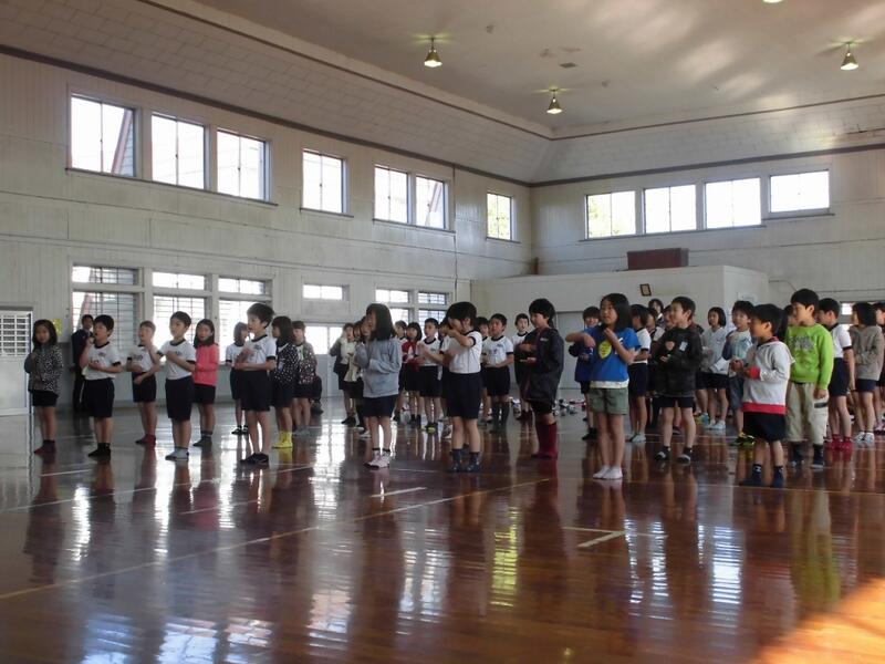 4年生48名は、体育着に着替え、やる気満々の様子。
