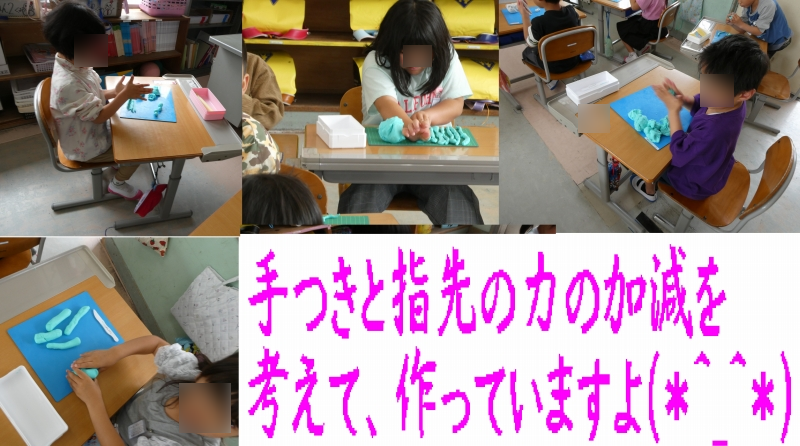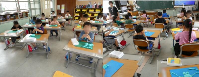 図工で「ねんどあそび」をしました。ねんどは、子ども達が好きな創