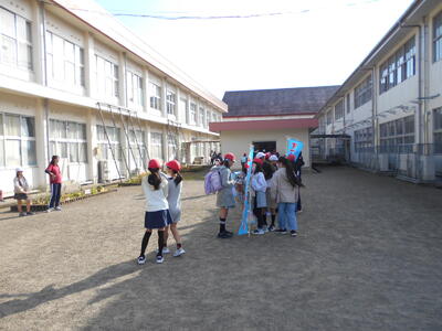 また、学校正門以外でも、靴箱出入口に子どもたちが立ち、あいさつを頑張っています。学校、地域が一丸となっています。