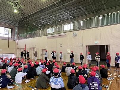 5月の運動会に向けた結団式がありました。団長のくじ引きで団の色が決定した後、団長、副団長、リーダーが決意を述べました。体育館に響く大きな声での決意表明でした。優勝への熱い想いが伝わってきました。