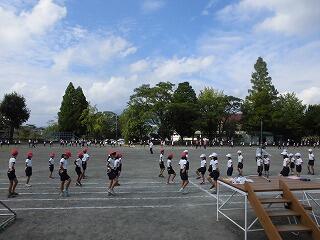 今日は全校体育2回目です。今日は、閉会式・全校団技・高原音頭の練習を行いました。みんな一生懸命練習に取り組んでいます。