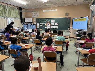 2年生が学級活動で「給食の正しいマナー」について学びました。箸と食器の持ち方は、実際に箸とお椀を使って練習しました。最後に、これから一週間、特に気を付けることを決めて、今日の給食は、姿勢も箸と茶碗の持ち方も正しくしようと心掛けていました。これから意識して続けることで、身に付いていきそうです。