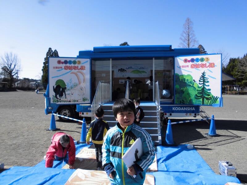 おはなし隊の方に読み聞かせいただいたり、キャラバンカーの中の絵本を自由に閲覧したりしました。本校の学校司書の前田道代先生も読み聞かせを行いました。