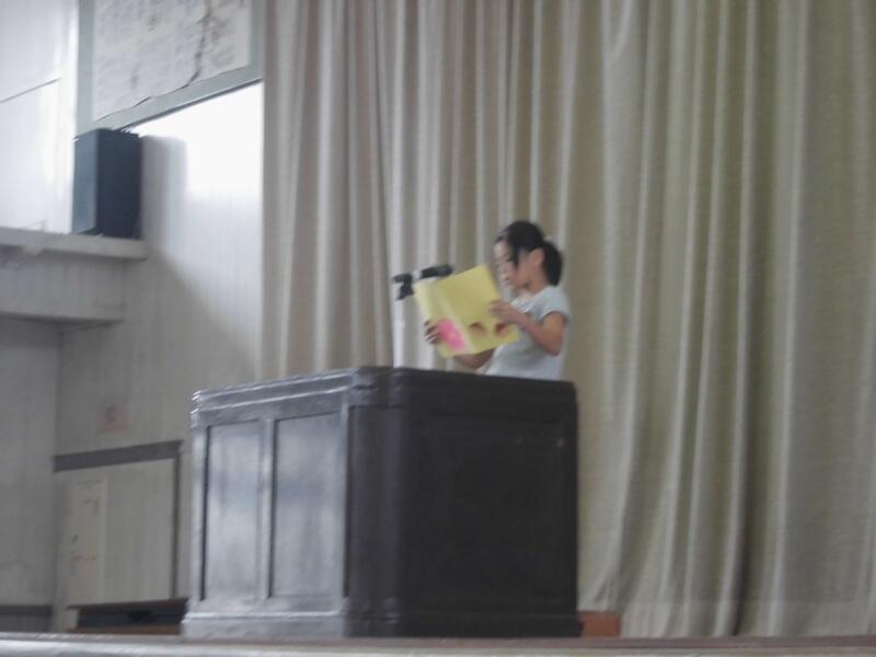 まず初めに、全校児童を代表して、3年1組の安田みずき(やすだ みずき)さんが、「2学期を迎えて」という題で、作文を発表しました。「あいさつを自分からすること」「やらなければならないことを最後までやり切ること」について堂々と発表してくれました。