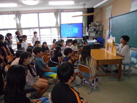 夏休み前の全校朝会をしました。成長した姿がたくさん見られました。まず、体育館への移動で、長い長い行列になりましたが、みんな静かに待って移動することができました。次に、「『4つの子』になれたこと発表」で、たくさんの子どもたちが前に出て発表しました。そして、みんなが静かに体を向けて最後まで聞いていました。最後に、夏休みを安全に楽しく過ごすための「水・車」の話も、よく聞いていました。移動も、発表も、話の聞き方もとても素晴らしく、子どもたちの成長を大変うれしく思いました。