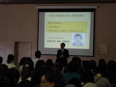 全校懇談では校長先生から1年間の経営方針などの説明がありました。
