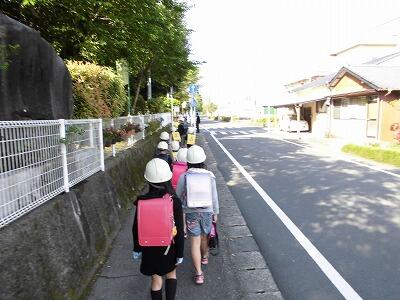 朝の登校の様子です。上学年の子ども達が下学年の子ども達を安全に学校まで連れてきています。