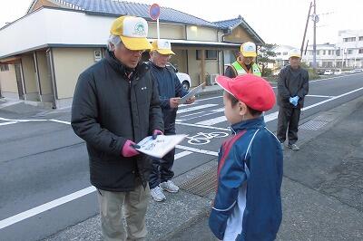 12月22日(月)今日はいつもあいさつ運動に来ていただいているボランティアの方々に3年生の代表児童がお礼の手紙を渡しました。