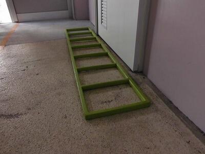 用務員の先生が、トイレの前にシューズを置く枠を作ってくれました。