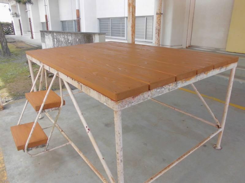 用務員の先生が朝礼台をリニューアルしてくれました。立派な朝礼台です。