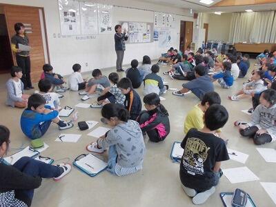 今日は高原小学校で町内4校の3年生が集まり、交流学習を行いました。